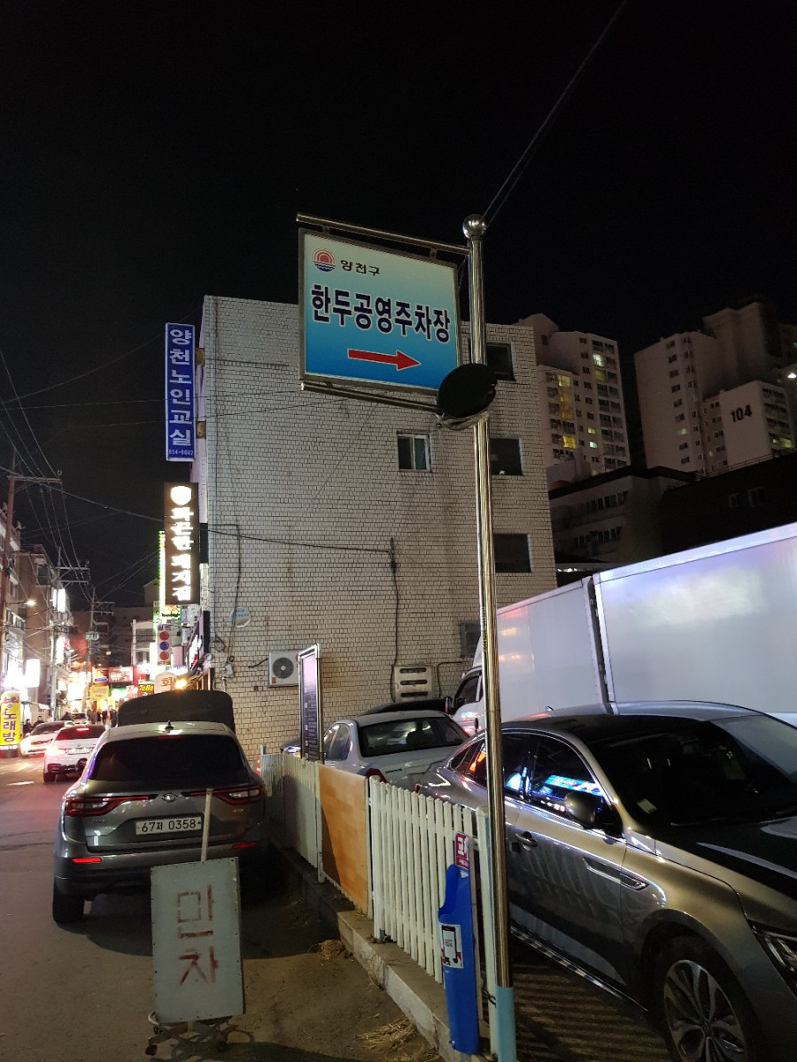 매장까지 가지 마시고 가는길에 한두공영주차장이라고 공영주차장이 있습니다.