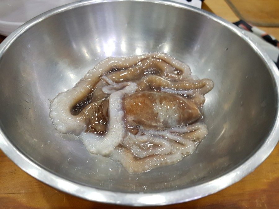거의 담갔다 뺀 느낌으로 데친 낙지입니다.