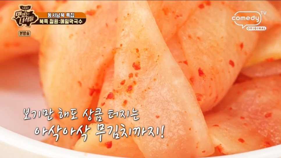 보기만 해도 상큼 터지는 아삭 아삭 무김치가 나오네요