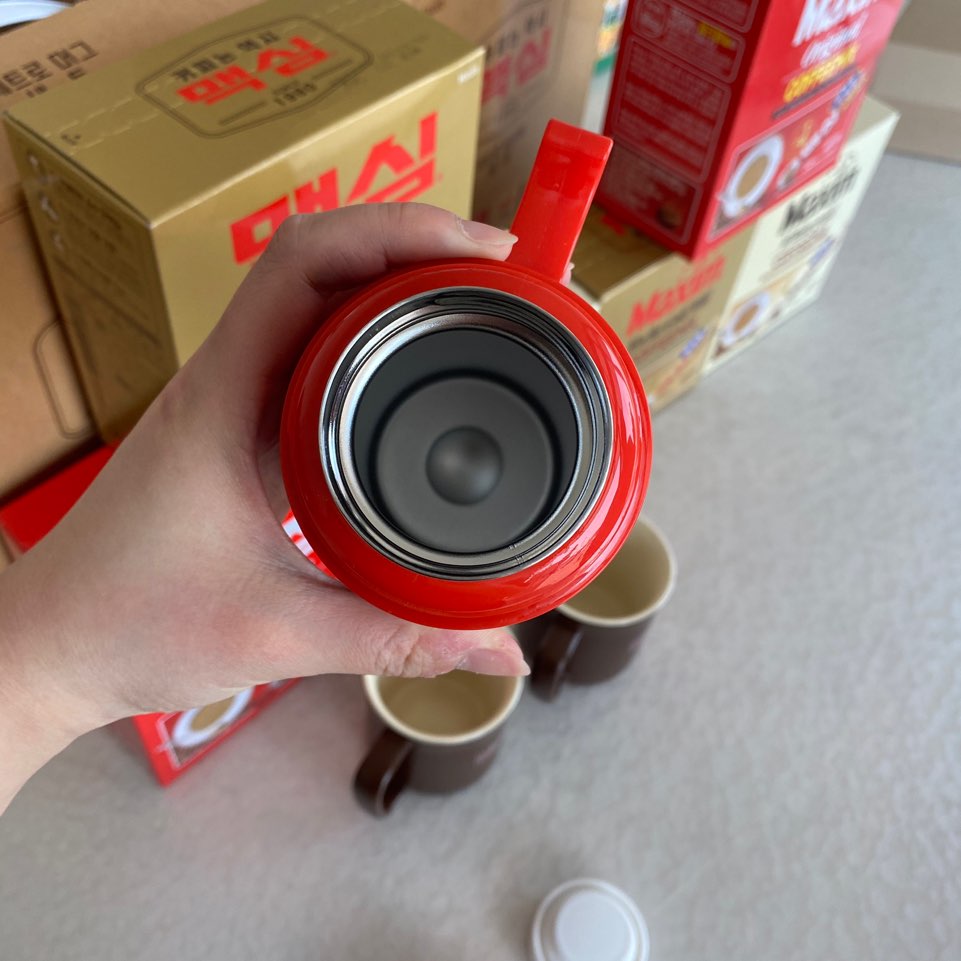 그런 레트로의 인기에 더불어 맥심 보온병이 엄청나게 인기였어요.