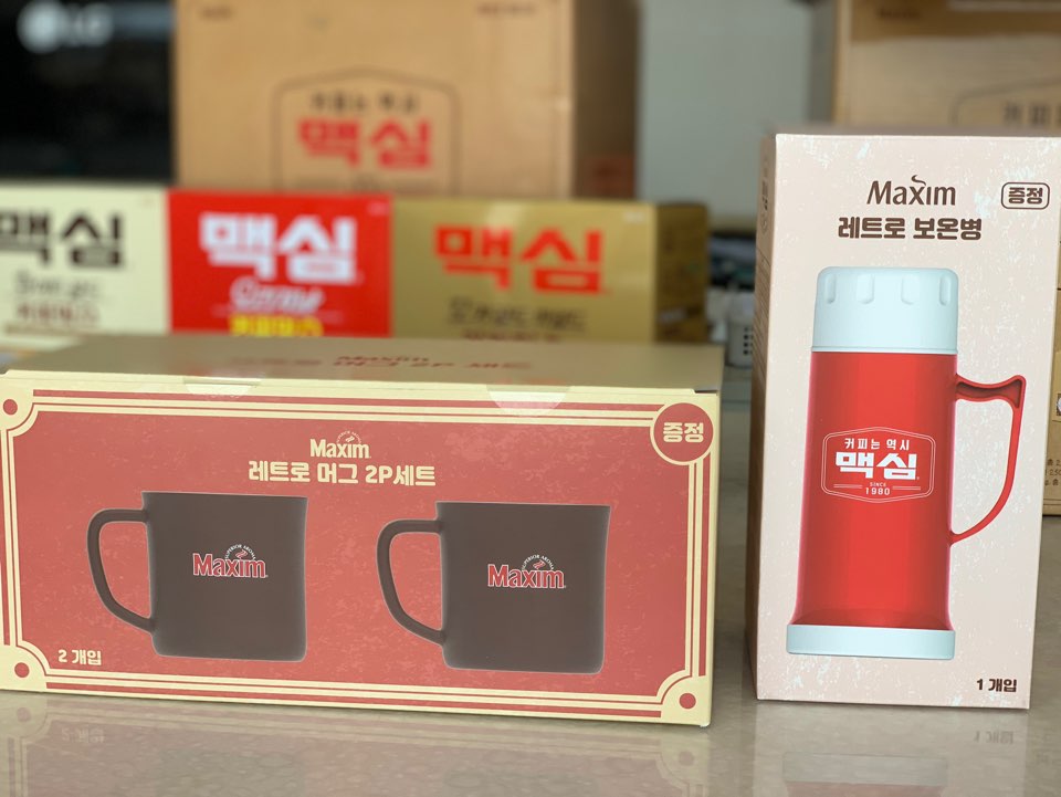 맥심 레트로 보온병, 맥심 레트로 머그 세트를 판매했는데요