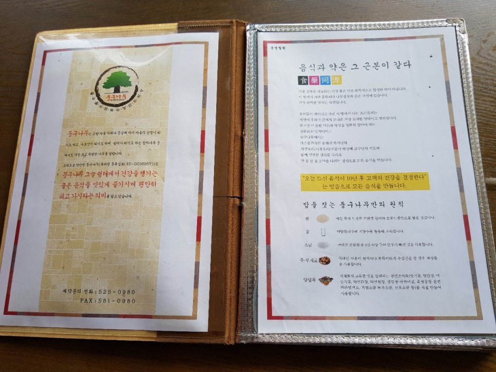 둥구나무의 문구가 좋은 음식 만드는 명인의 식당이네요.