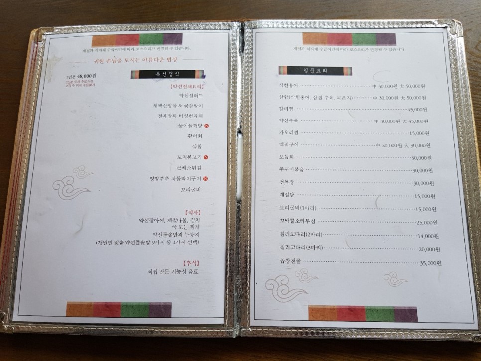 저는 둥구약선정식을 주문했습니다.