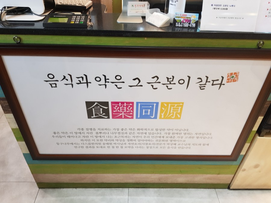 그리고 카운터에 보시면 음식과 약은 그 근본이 같다라고 하네요.