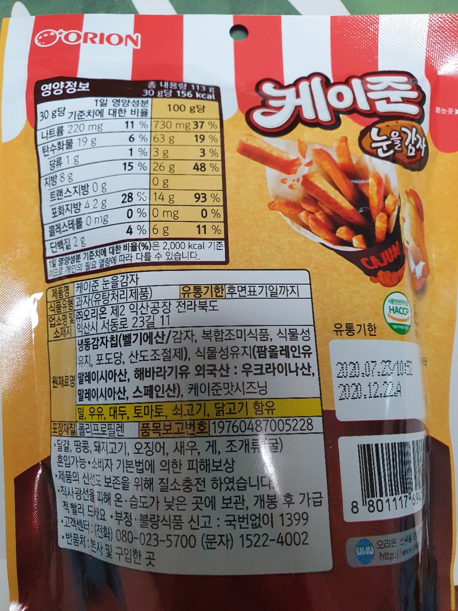 냉동 감자칩에 케이준맛시즈닝이 첨가된 제품입니다.