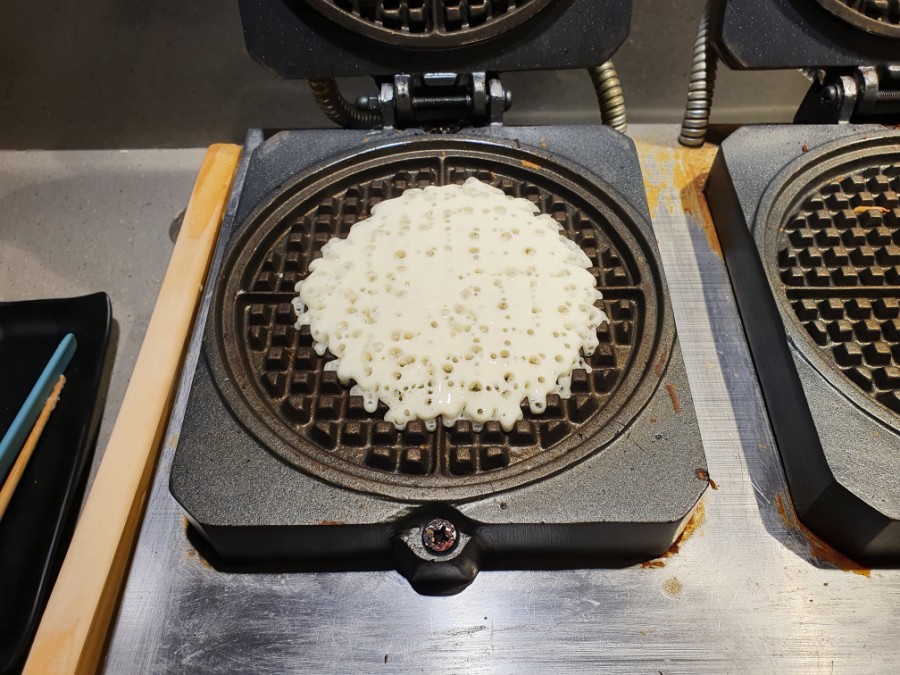 한쪽에 와플기계가 준비되어 있어요.