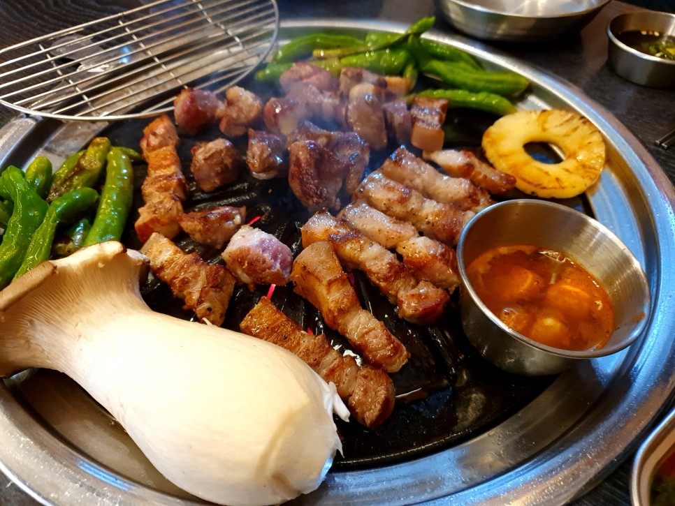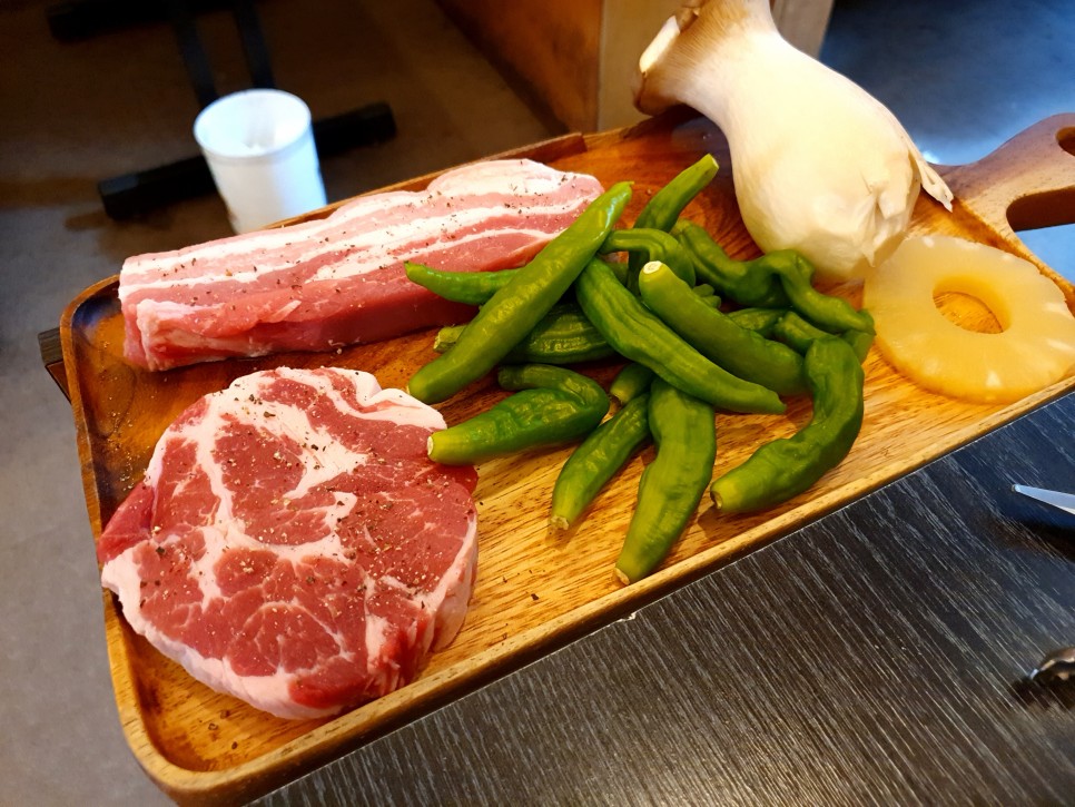 삼겹살, 목살, 꽈리고추, 버섯, 파인애플, 맬젓까지