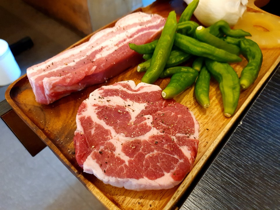 껌삼겹살, 목살 고기만 봐도 아주 좋아 보이죠.