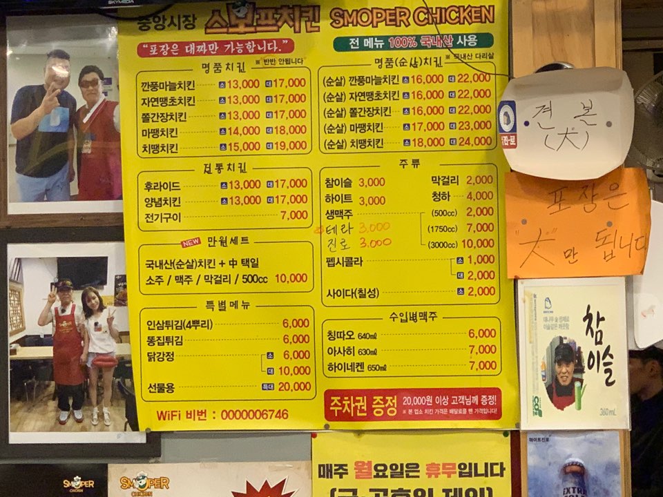 일단 스모프치킨 메뉴판을 봅시다!!