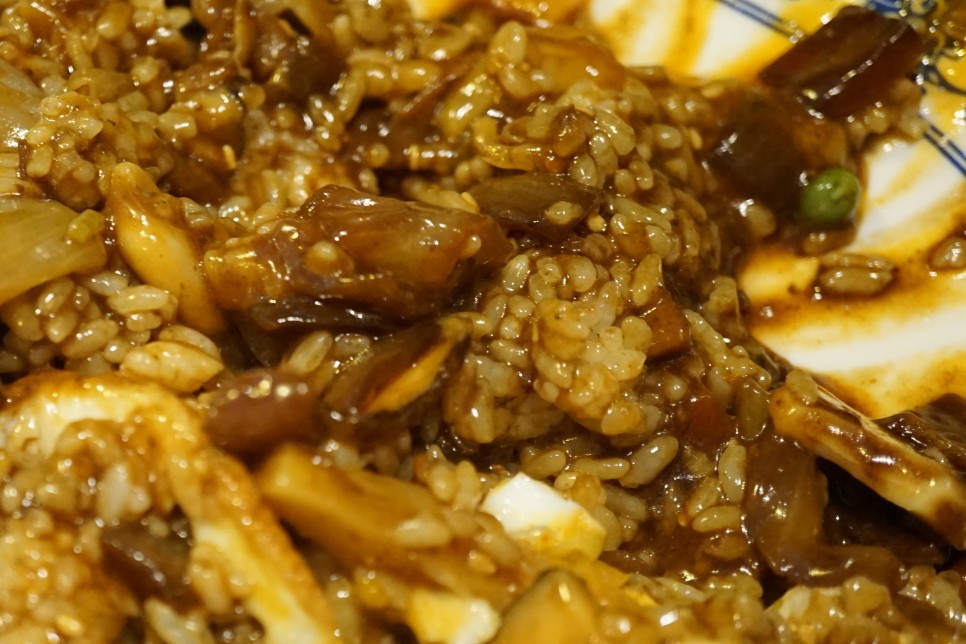 색깔상 짜장 양념의 색깔이 강하기 때문에 거의 짜장밥 느낌이 나는데요