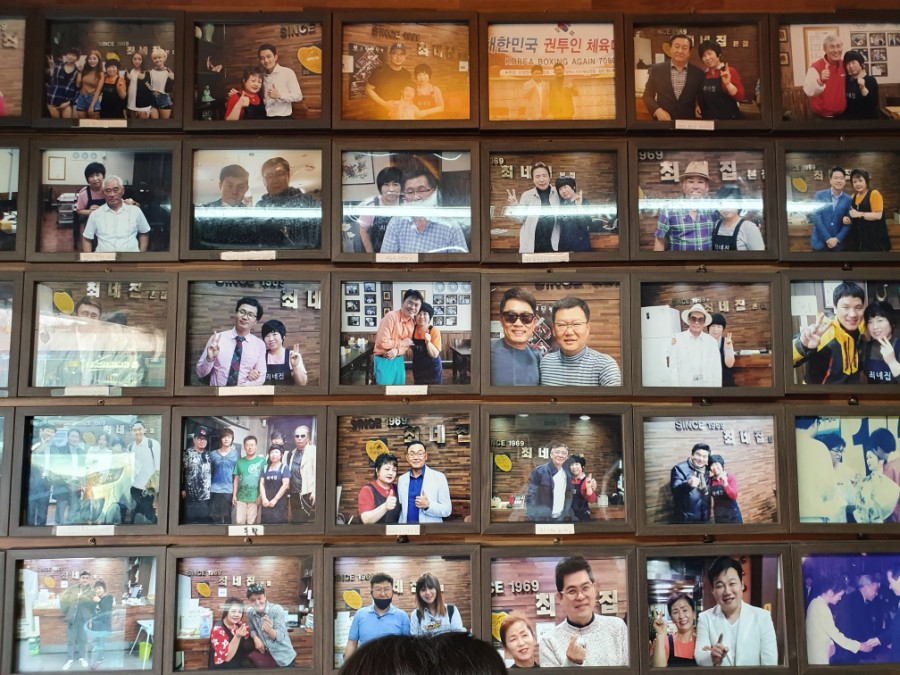 입구에 들어서면 어지간한 연예인은 다 사진을 찍었어요.