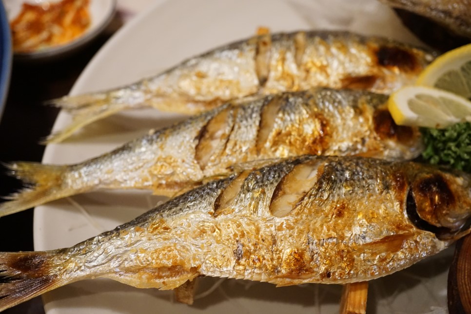 왼쪽부터 고등어구이, 전어구이, 조기가 나오네요