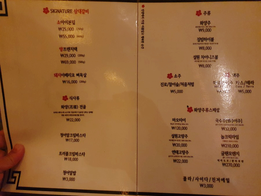 이제 용산 분위기 좋은 고기집 화양연화의 메뉴판을 봅시다!!