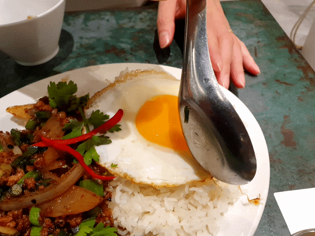예쁘게 올라간 써니사이드업을 팍팍 깨주시고