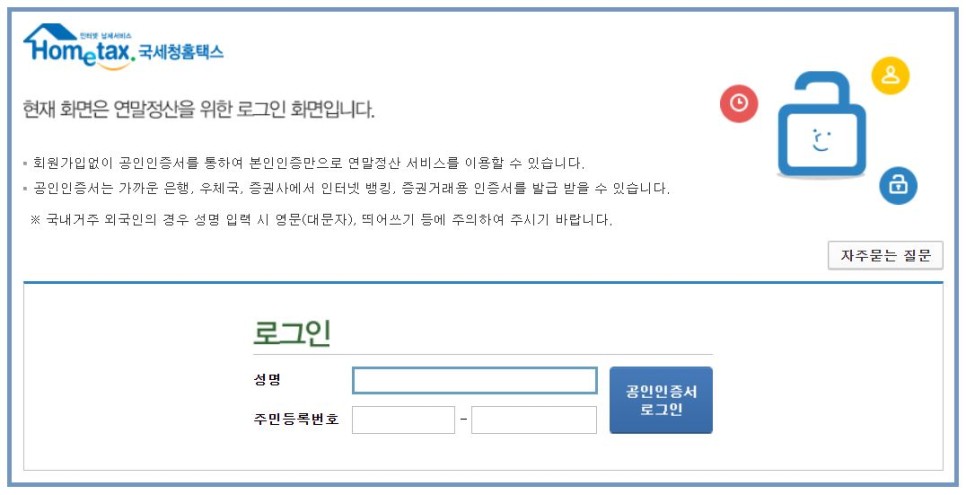 그다음 국세청홈택스에서 공인인증서로 로그인을 하면 끝!!