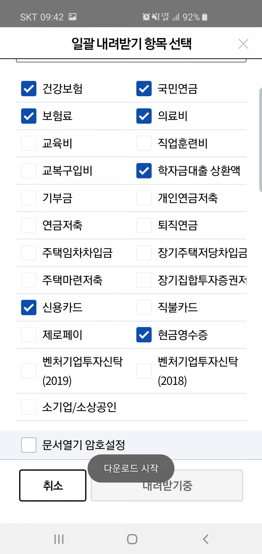 나에게 해당하는 항목들에 체크를 하고 다운로드를 하시면 됩니다.