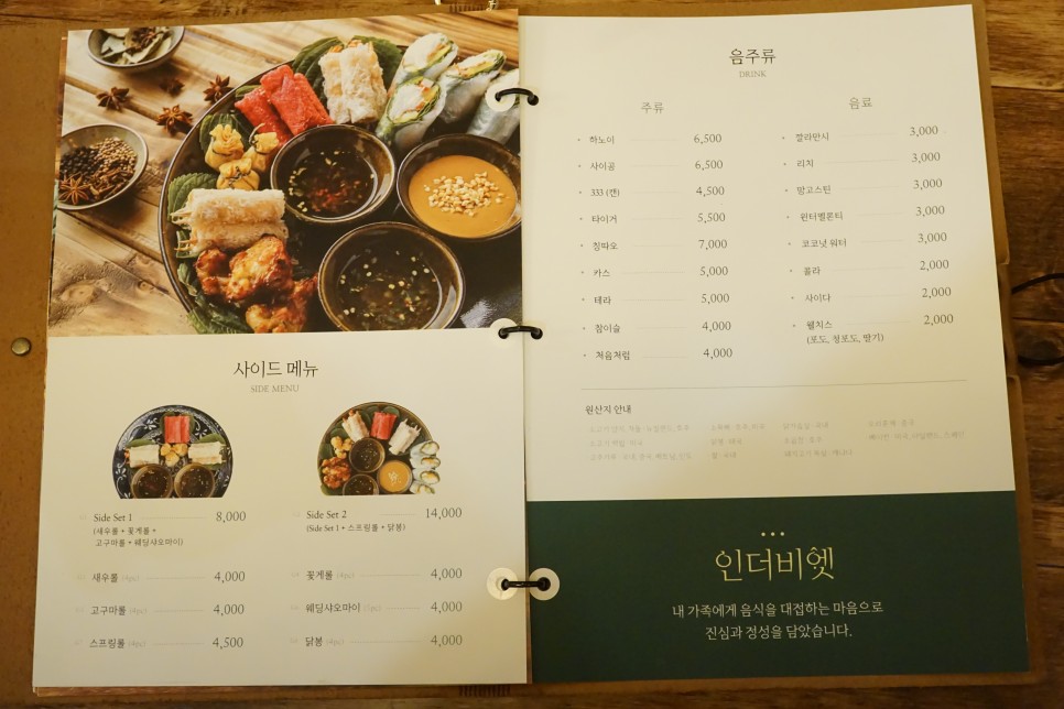 마지막장은 사이드 메뉴와 음주류입니다.