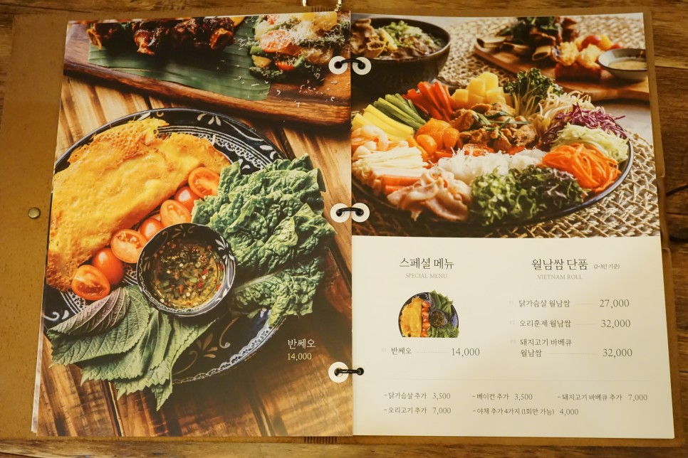 다음은 스페셜메뉴와 월남쌈단품, 세트 메뉴입니다.