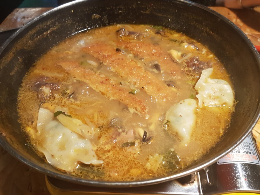 근데 진한 육수를 머금은 돈까스는