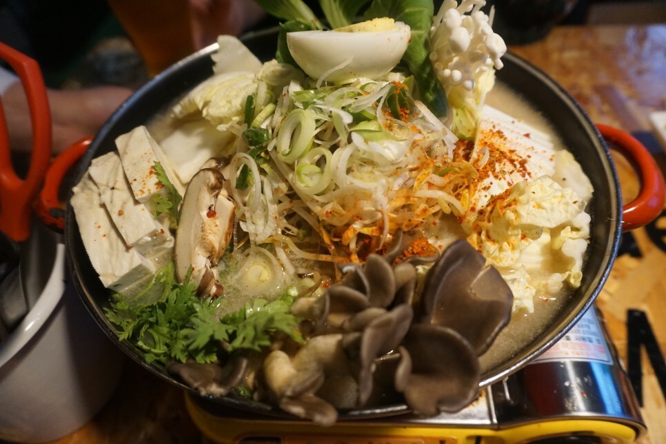 버섯, 두부, 배추 등등 안쪽에도 많은 재료들이 숨어있어요.
