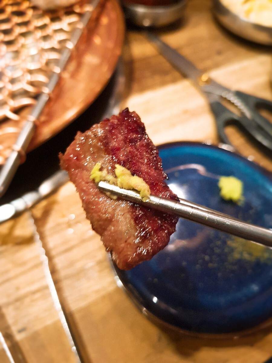 부위별로 소금도 찍어 먹어보고 와사비도 찍어 먹어봅니다.