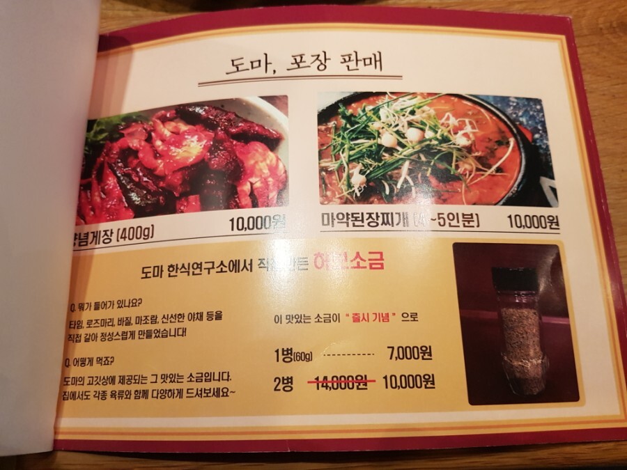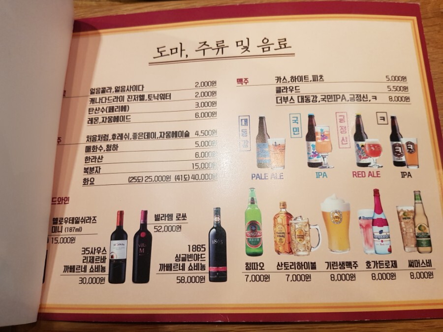 저는 2명이 방문했고 도마모듬A 2개, 마약된장찌개, 소주, 레드에일 주문했습니다.