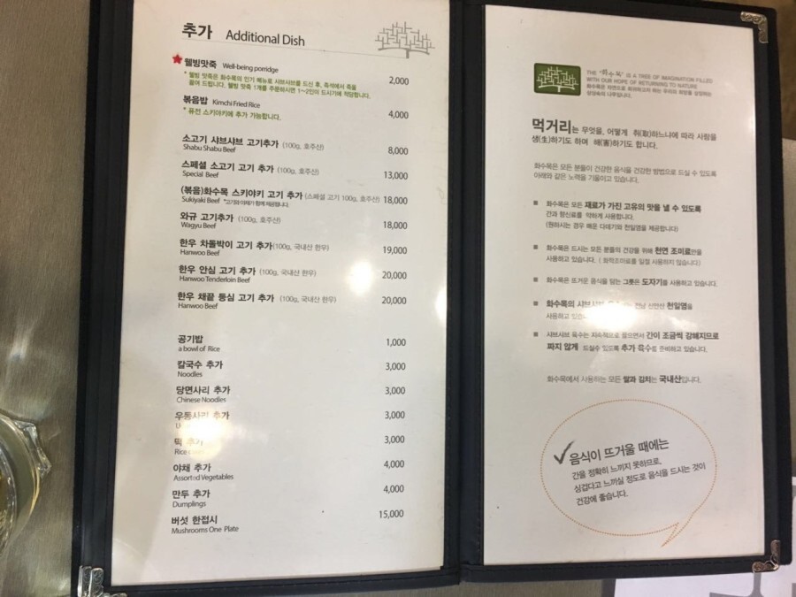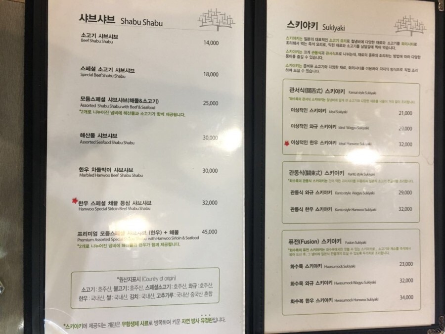 화수목에서는 스키야키 뿐만 아니라 샤브샤브도 판매합니다.
