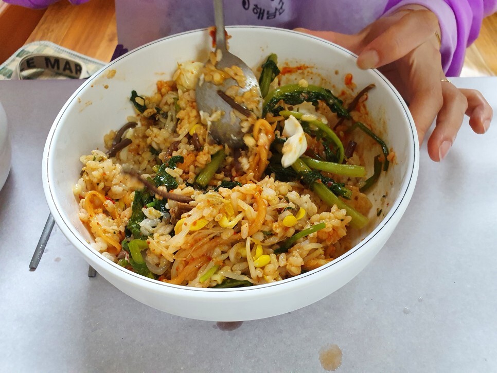 매콤 달달한 제육과 든든한 비빔밥을 먹을 수 있어요.