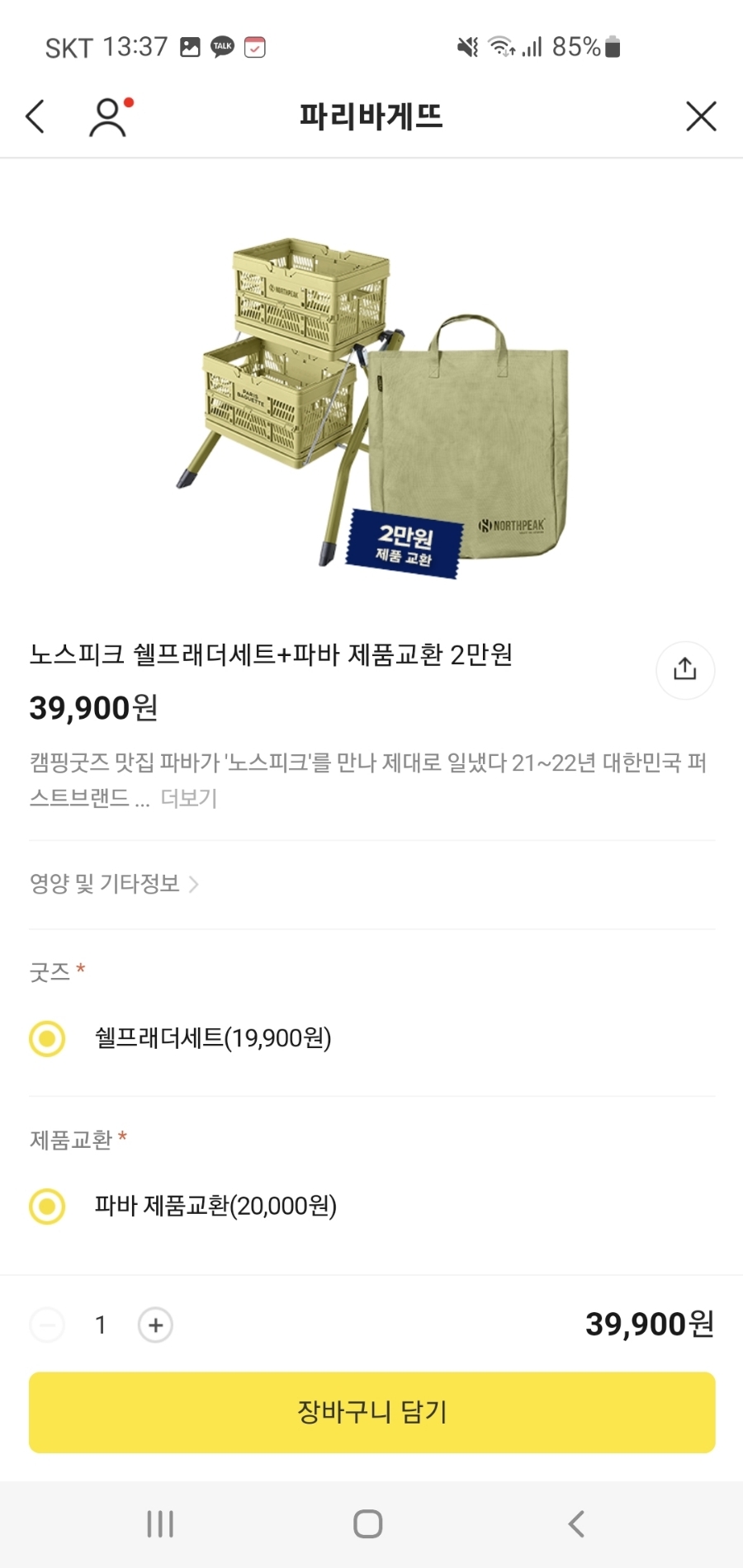 이번 파리바게트 노스피크 쉘프래더세트는