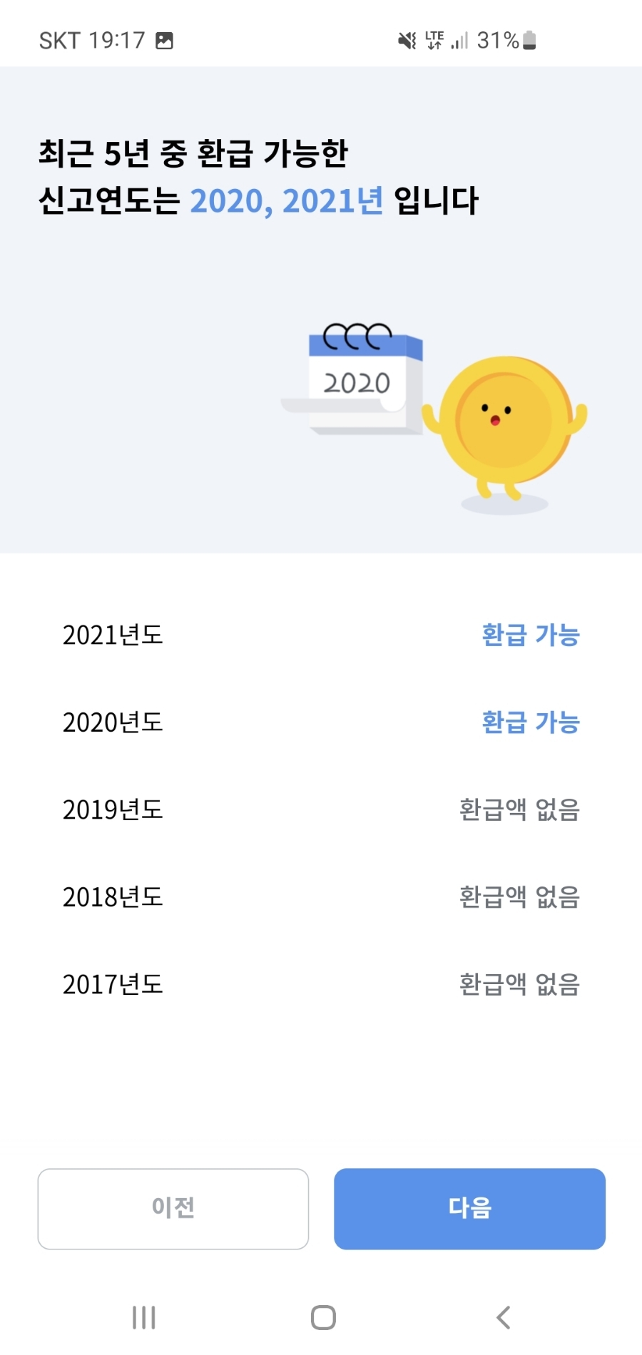 그런 다음 환급이 가능한 년도만 알려줍니다.