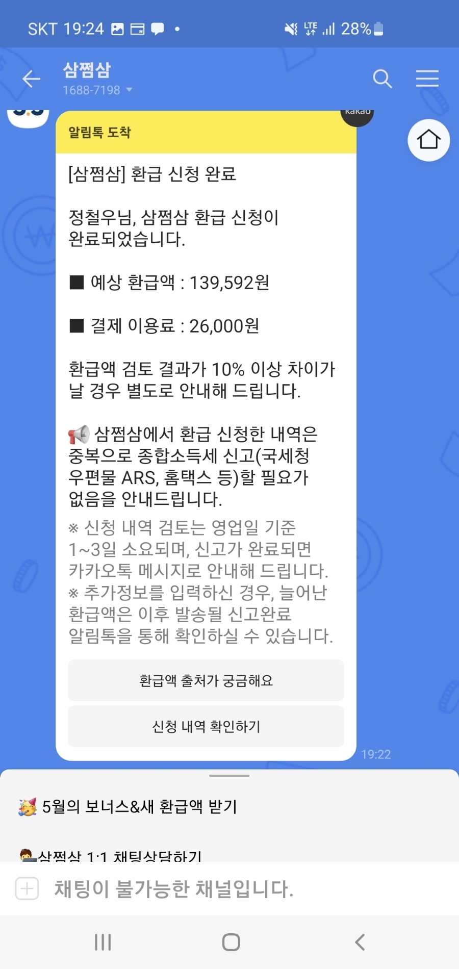 저는 이미 환급을 다 받았다고 하더군요.