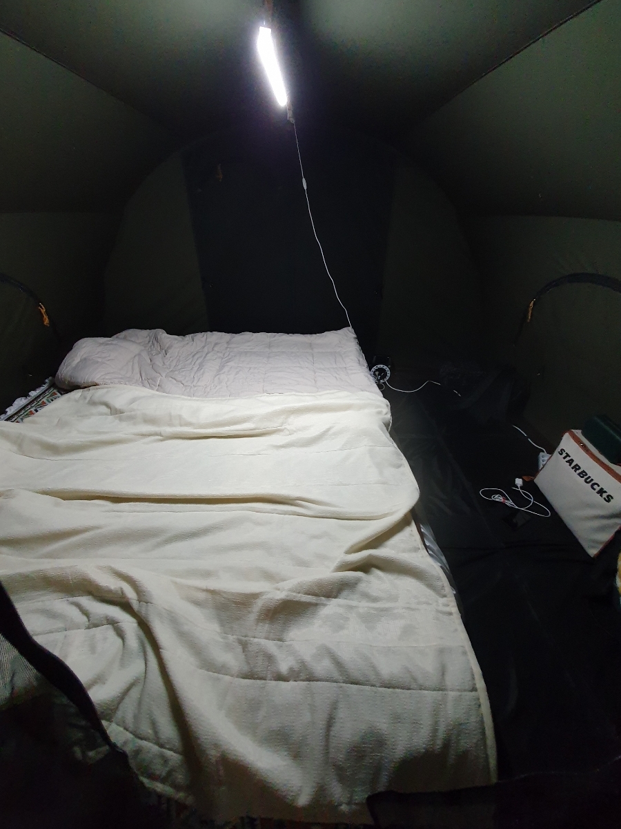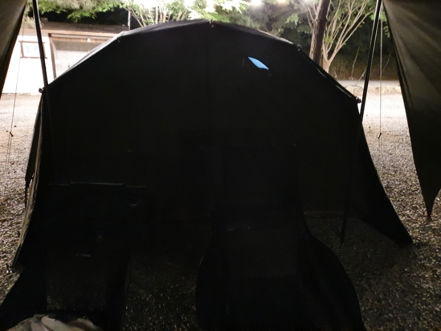 한 낮임에도 불구하고 텐트 실내는 전혀 보이지 않기 때문에