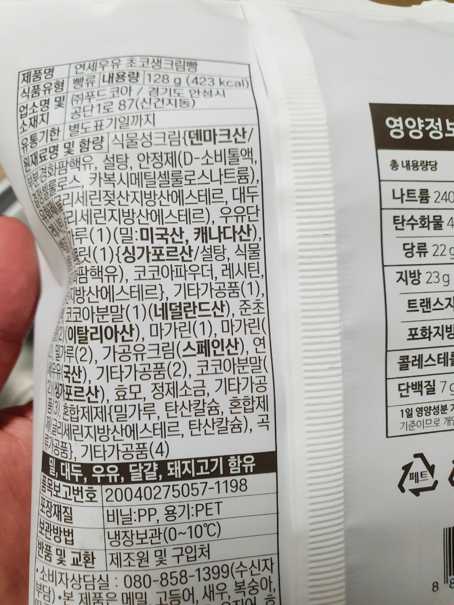 다음은 연세우유 초코생크림빵입니다.
