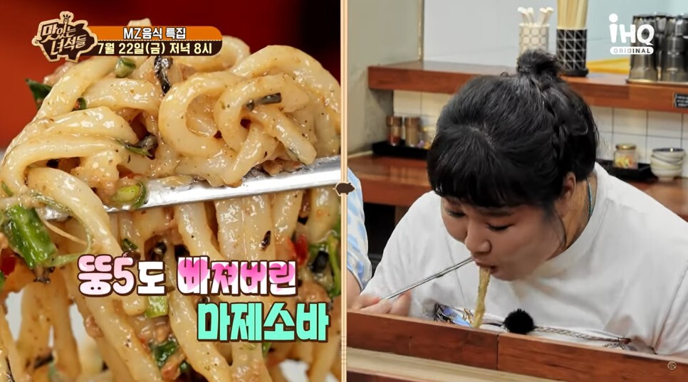 맛있는녀석들 마제소바는 우동면발 같은 두꺼운 면발을 사용하고