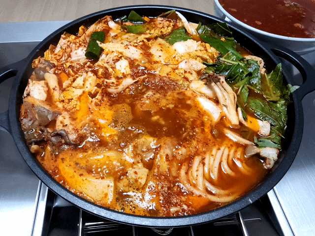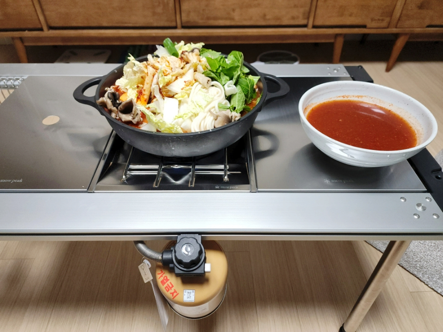 아주 큰 사이즈의 무쇠솥을 올려서 끓여봅니다.