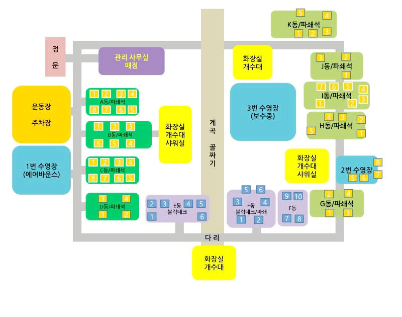 모든 사이트의 부대시설들이 컨테이너로 구성되어있는데