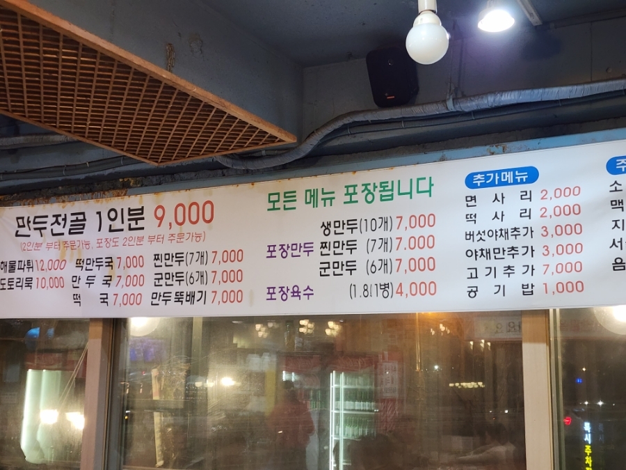 대표메뉴 : 만두전골 1인분 9,000원, 해물파튀 12.000원