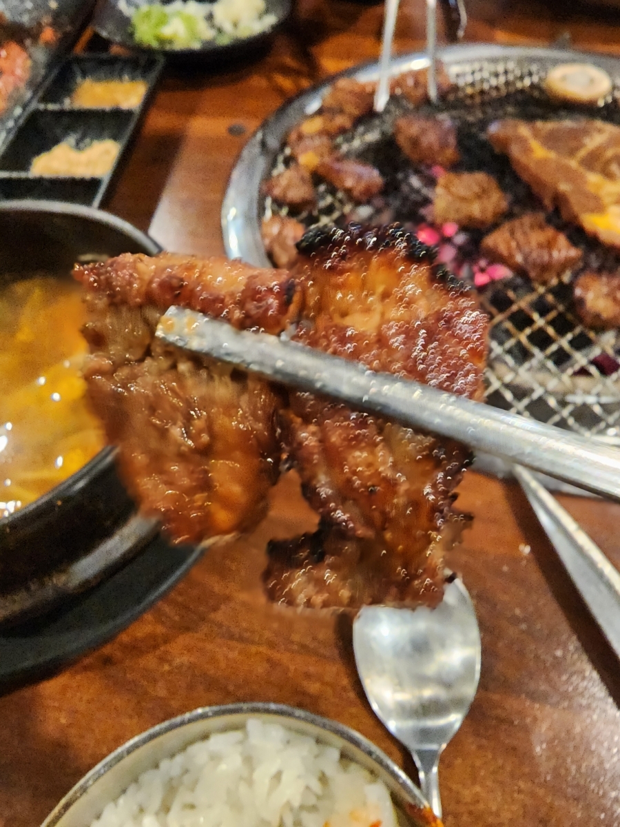 숙성된 갈비를 숯불에 구워주니 이게 맛이 없을래야 없을수가 없습니다.