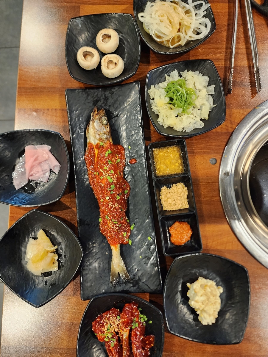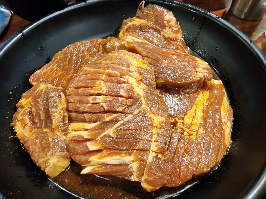 양념돼지고기, 갈비살, 껍데기 3대장을 다 맛볼 수 있는 곳이고