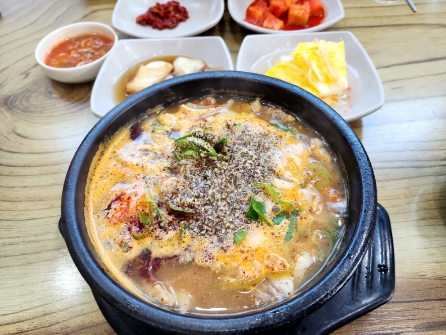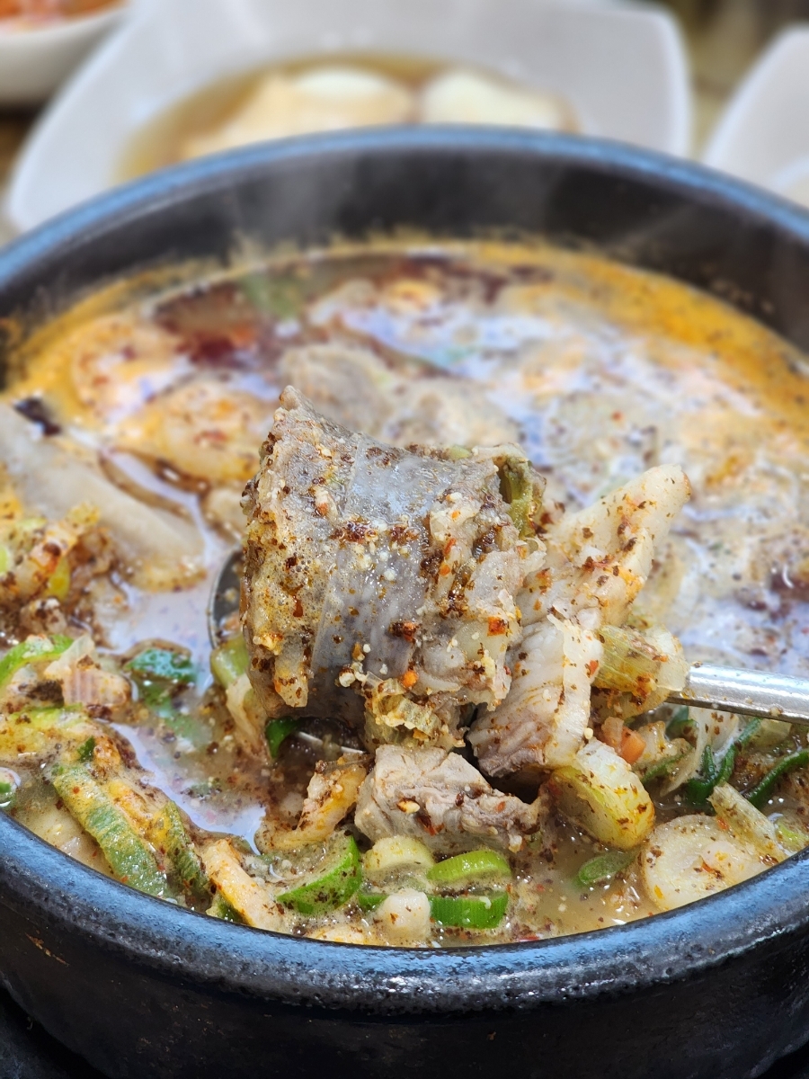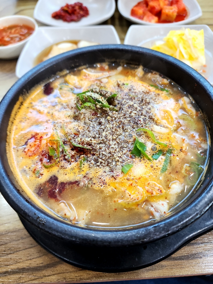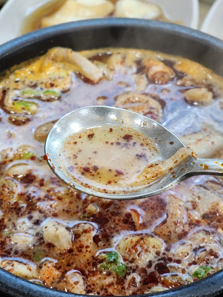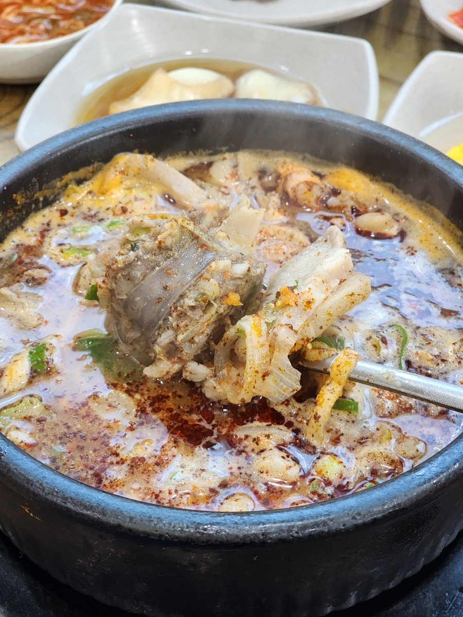 깊은 칼칼한 국물에 속이 꽉 차있고