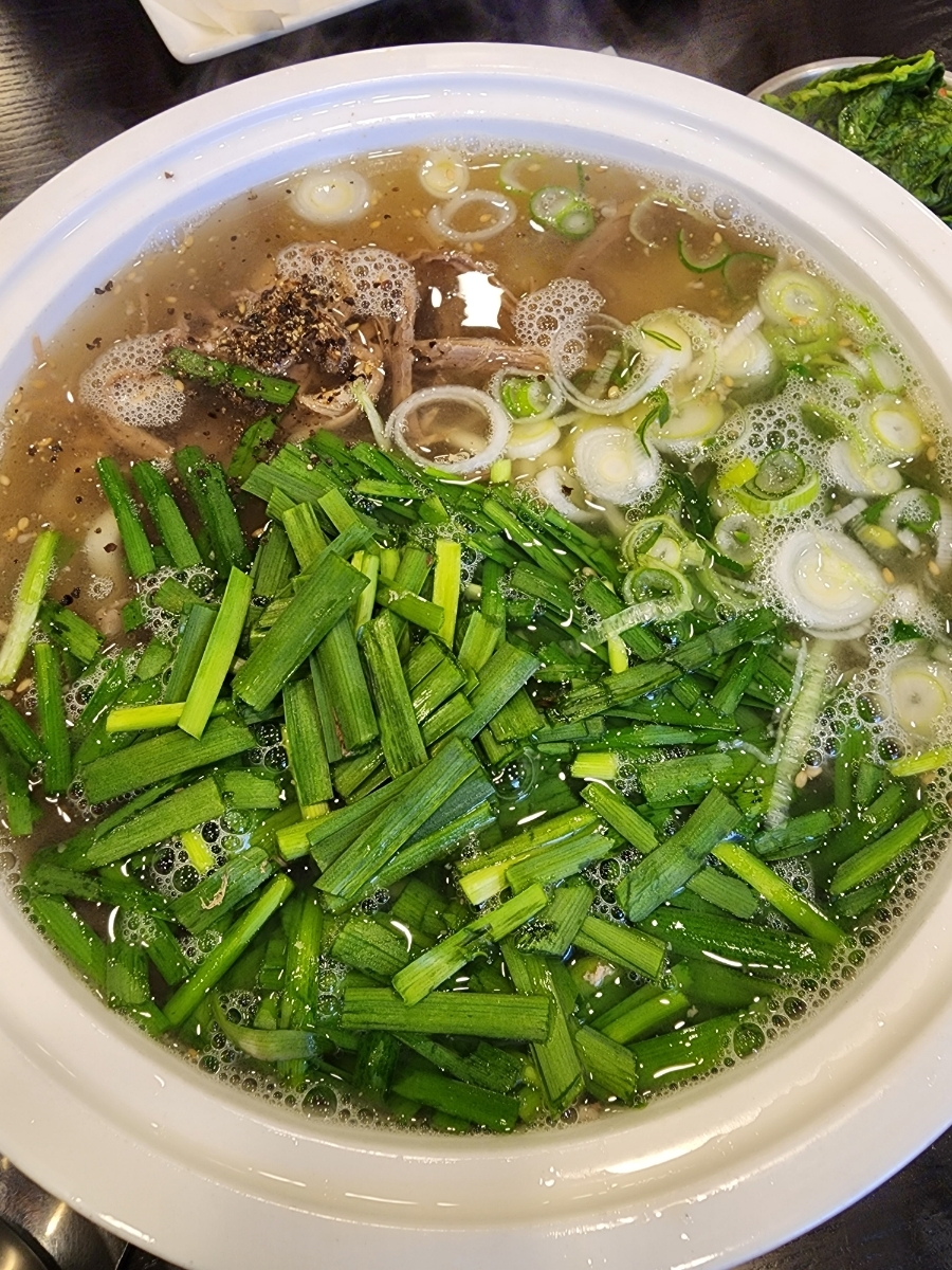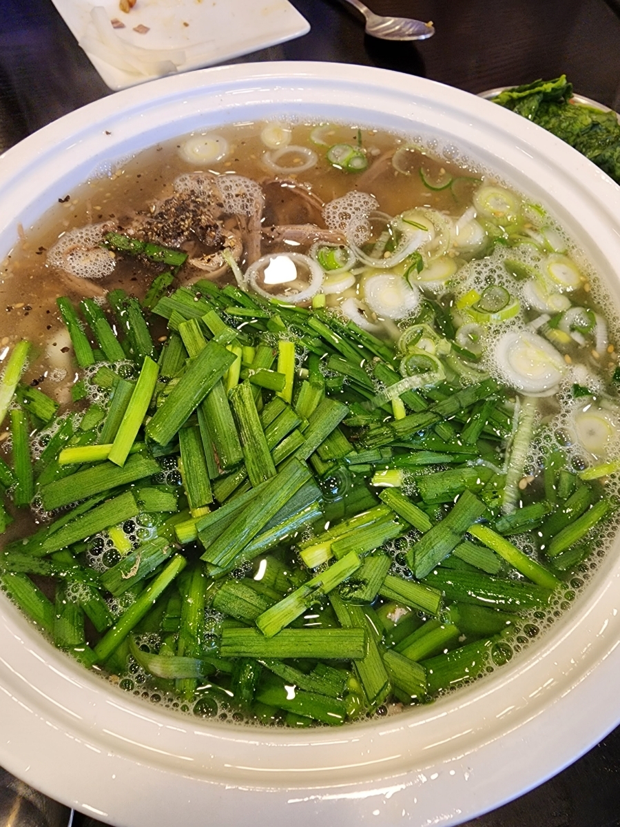 고기와 파 그리고 부추가 매우 푸짐하게 올라간 것이 특징이었어요.