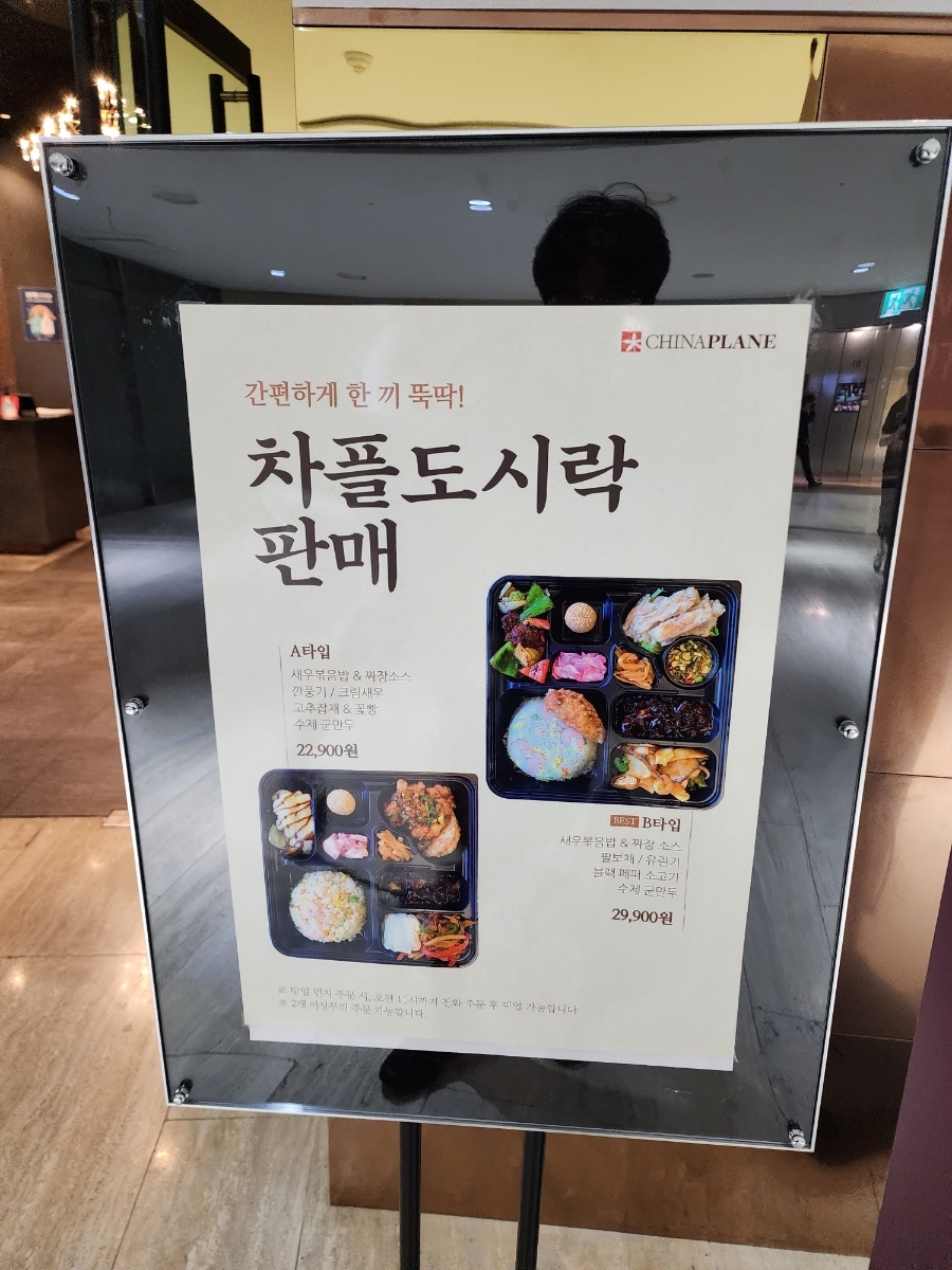 여의도 중식당 차이나플레인 메뉴판입니다.