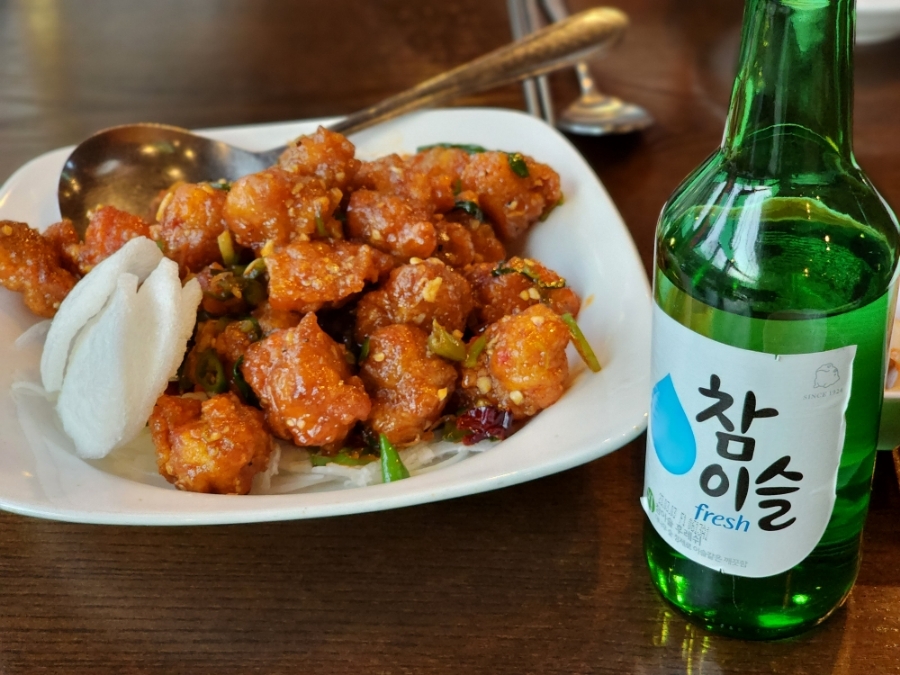 맛있는 깐풍기에 소주를 함께 먹으니