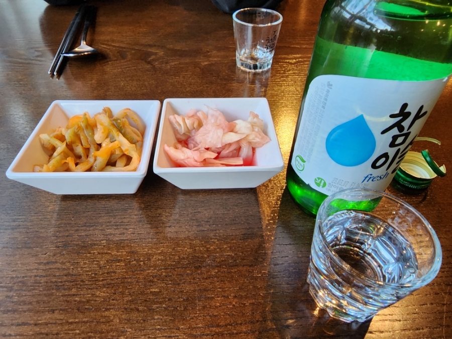 양배추 피클이 취향저격이라서 바로 이슬이 한병 주문했어요.