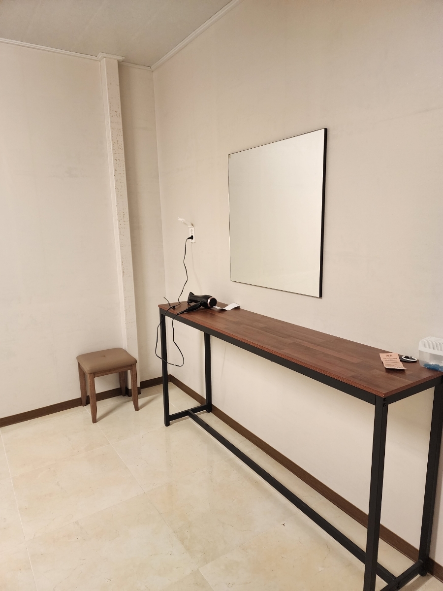 요즘 캠핑장답게 거울과 드라이기도 비치되어 있습니다.