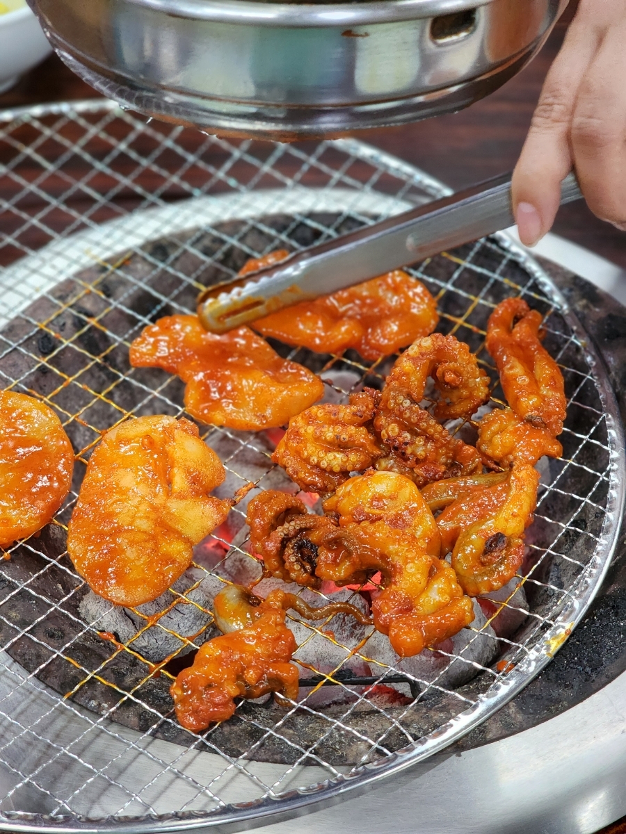 개인적으로 숯불에 조금 많이 익힌 쭈꾸미도