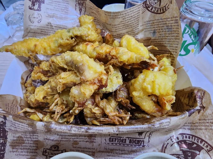다양한 튀김이 들어있는 모듬튀김입니다.