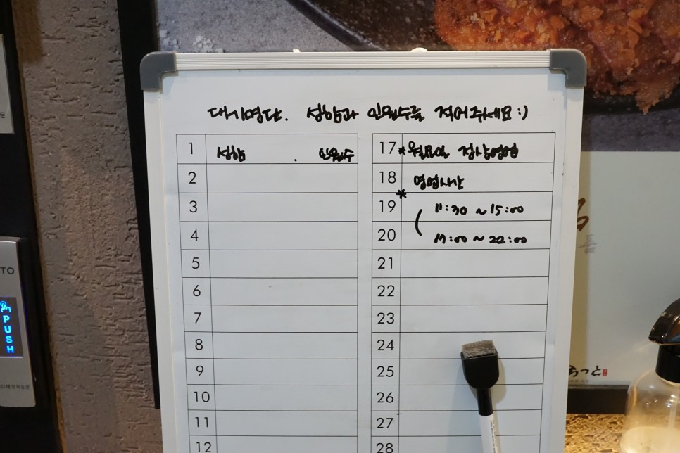 상당히 핫한곳이라서 대기명단 칠판이 있어요.