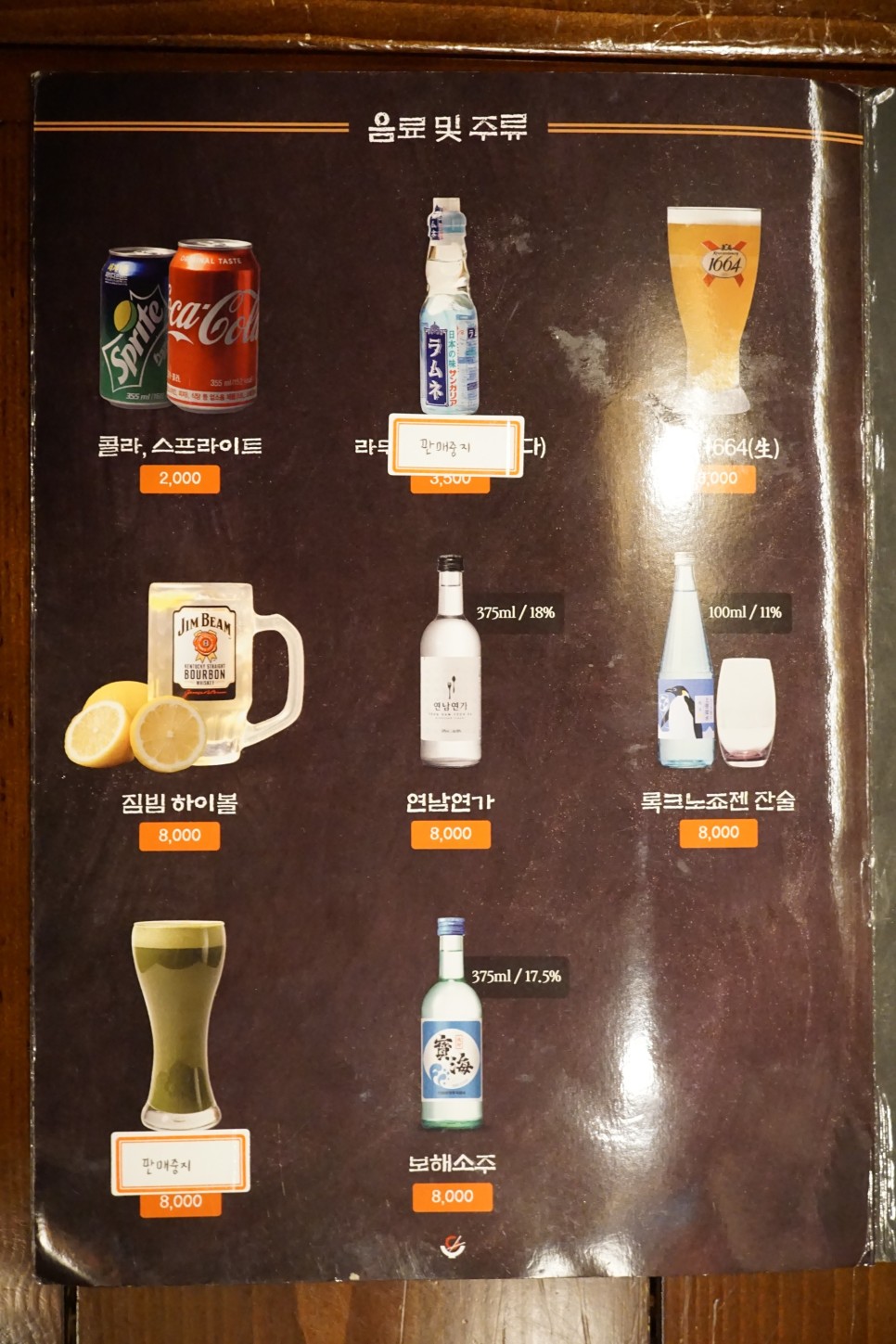 그리고 술과 음료수 메뉴가 있습니다.