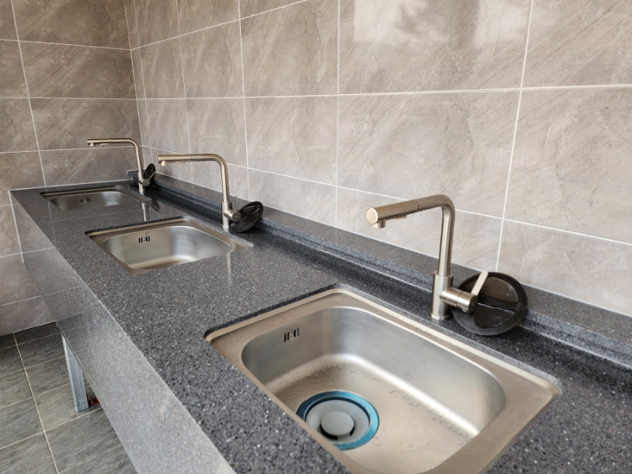 각 구역마다 작은 개수대가 있기는 하지만 온수가 나오지 않아서